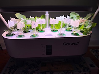 I was so excited to receive the indoor, hydroponic garden from my Christmas list. I “planted” salad greens, various herbs and some tomatoes. Amazingly, some of the seeds began sprouting within a few days! Other seeds take longer. (See image below). Some can take over, while others are more contained. It says you have to watch because the faster ones can block the light from the smaller ones, which could inhibit their growth.